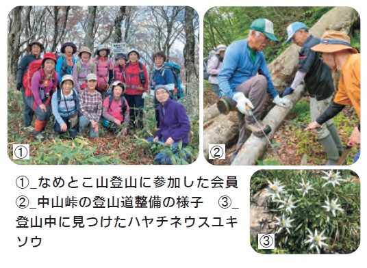 花巻山友会は岩手県勤労者山岳連盟に加入し、来年に結成50周年を迎え現在、結成時~の会員を含め30~70歳代まで幅広い年代の山を愛する会員40余人が在籍し、山登りを楽しむ傍ら、登山道整備や自然保護活動も行っています。モットーは「裏山からヒマラヤまで」。市内の山から海外の山までさまざまな山を登り、年齢を問わず山登りの楽しさを分かち合っています。また、山登りの楽しさを伝えるために、会員を講師とした登山教室を開催するほか、早池峰山の高山植物をシカが食べないよう柵を建てるなど、県の自然保護活動にも協力しながら活動を行っています。会員を随時募集中。初心者も歓迎しており、興味のある人は問い合わせ先までぜひご連絡ください。